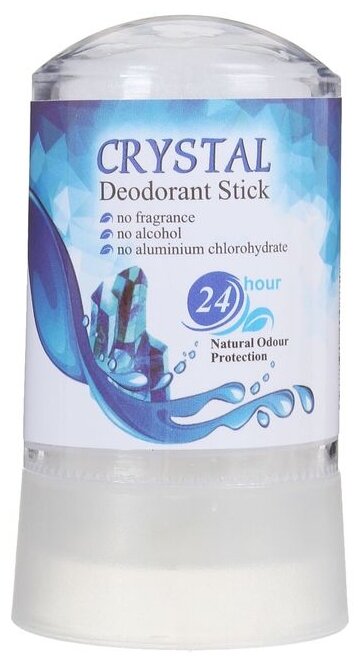 Кристаллический дезодорант обычно изготавливается из натуральной минеральной соли, называемой сульфатом калия и алюминия (также известной как квасцы калия), которая известна своими антимикробными свойствами.